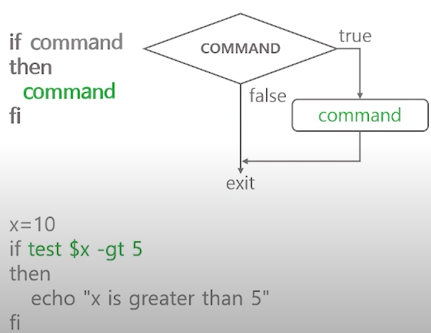 - 조건 명령어. command 실행 결과에 따라 서로 다른 command를 실행